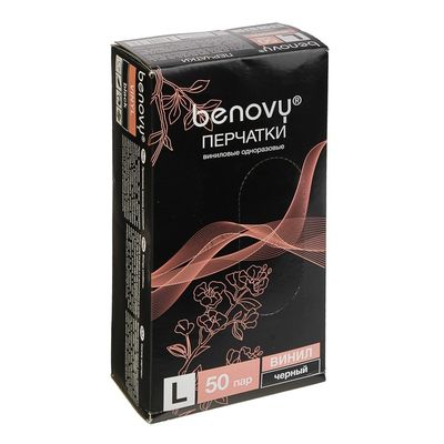 Перчатки винил черные, 50 пар/уп, р-р Л